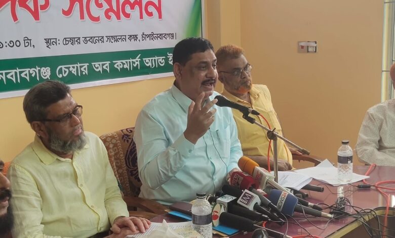 রবিবার চাঁপাইনবাবগঞ্জ চেম্বার ভবনে, চেম্বারের সহযোগী সদস্যপদ নবায়ন সংক্রান্ত বিষয়সহ,জেলার ব্যবসা-বানিজ্যের উন্নয়নে চেম্বারের চলমান উদ্যোগ সম্পর্কে জানাতে সংবাদ সম্মেলনে চেম্বার সভাপতি আব্দুল ওয়াহেদ এ দাবি তুলে ধরেন।