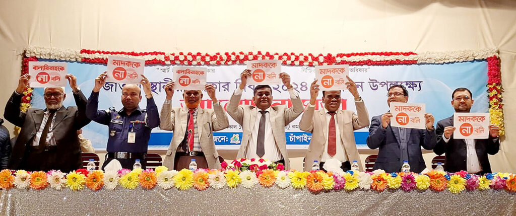 বাল্যবিয়ে ও মাদককে না বলার শপথ নিয়েছেন চাঁপাইনবাবগঞ্জের কর্তাব্যাক্তিরা। মঙ্গলবার চাঁপাইনবাবগঞ্জে অনুষ্ঠিত জাতীয় স্থানীয় সরকার দিবসের অনুষ্ঠানে বাল্যবিয়ে ও মাদক কে না বলার শপথ নেন জনপ্রতিনিধি, সরকারি কর্মকর্তা ও বিভিন্ন শ্রেনী পেশার মানুষ।